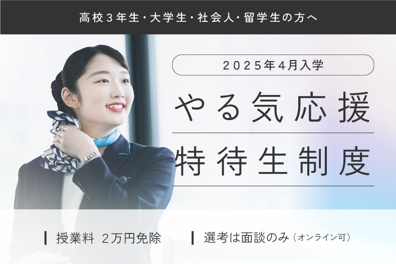 エアライン・ホテル・観光・ブライダル・製菓を仕事にしたいあなたを応援します! 『やる気応援特待生』 10/3(金)~募集開始!