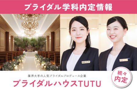 ブライダル学科2年生が内定率100%達成! この度SKBブライダル学科の2年生が就職内定率100%を達成いたしました! (※2023/12/05現在 就職希望者19名/就職決定19名 2024年3月卒業予定者) なんと!!11年連続で就職内...