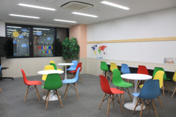 授業以外の休み時間や放課後に自由に利用し、語学力・異文化理解・国際感覚の成長を目指していく空間です。