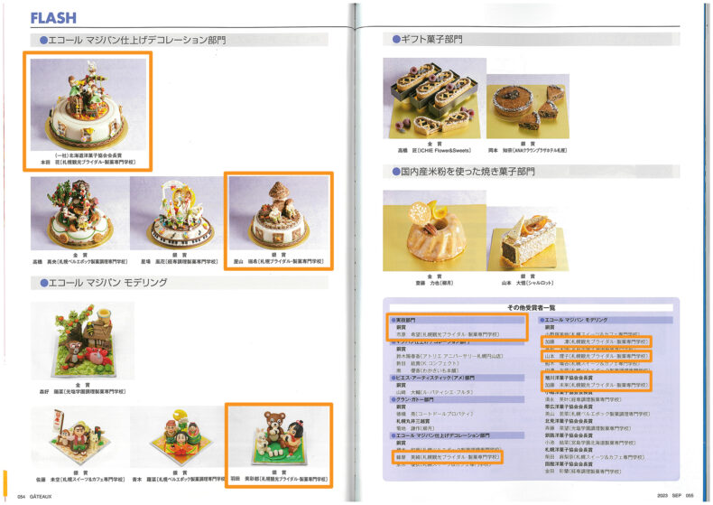 先日開催され、在校生7名と職員2名が受賞した「2023北海道洋菓子作品コンテスト大会」の内容が、全国の洋菓子協会会員のみが見ることができる業界専門誌「GÂTEAUX」に掲載されました!