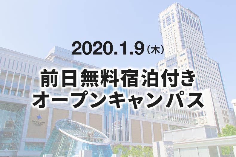 【申込を締め切りました】2020年1月9日(木)前日無料宿泊付きオープンキャンパスを開催