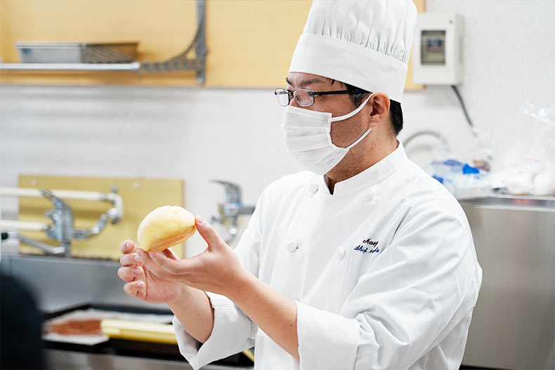 テレビ番組、カンブリア宮殿でも紹介されるほど、全国的に有名な老舗パン屋『満寿屋商店』の製造管理部部長 天方慎治シェフによる第二回目 製パン特別授業を実施しました。今回はメロンパン、角食パン、ショコラ・シュトレンの人気商品を作りました。