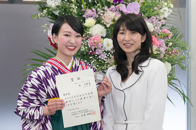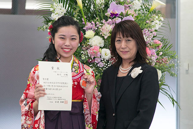 学校・アルバイト等、大変だったり、苦しいと思う時もありましたが、先生・友人に支えられ頑張る事ができたと思っております。結果、少しですが、以前の自分より自信を持つことができました。ありがとうございました。